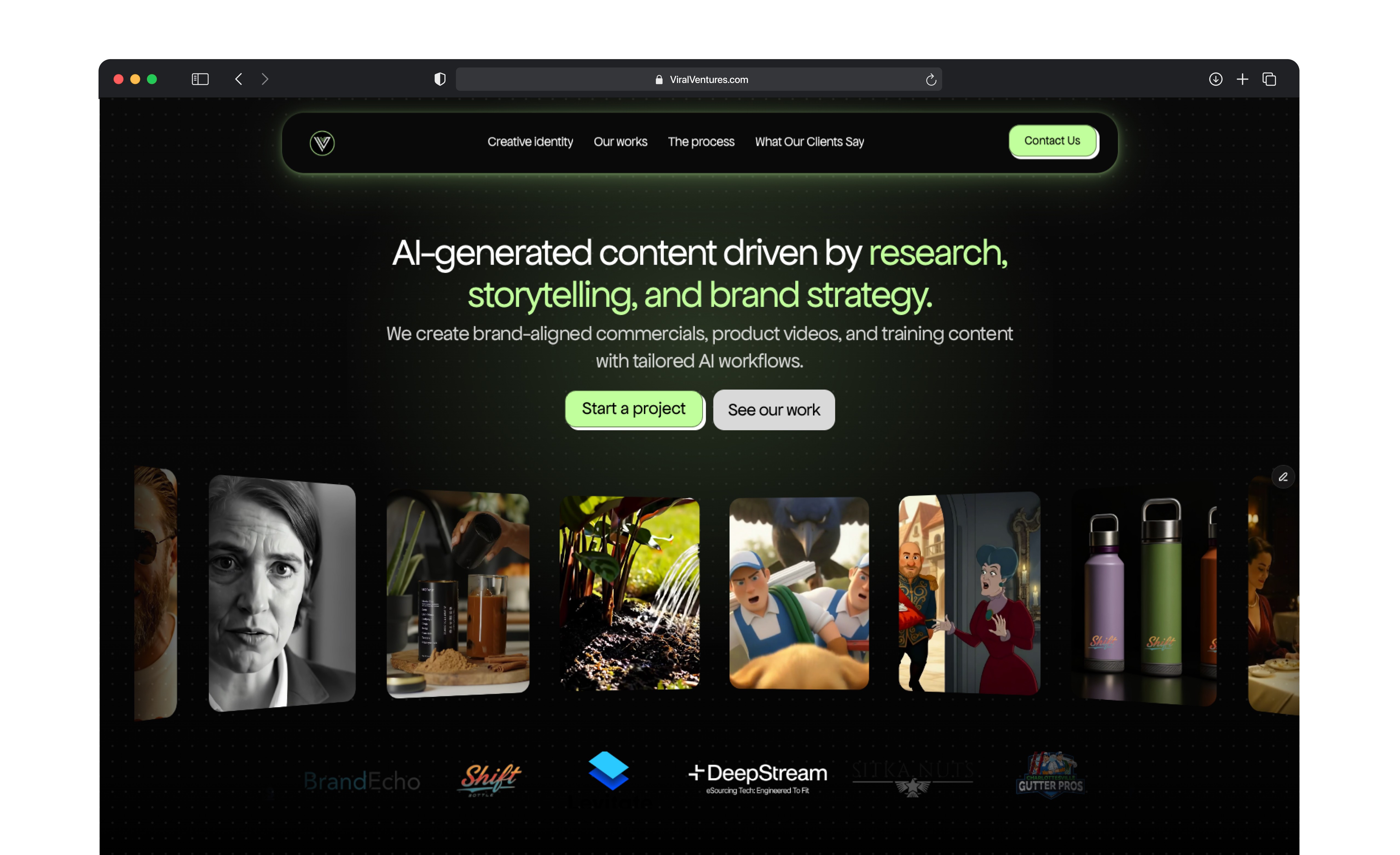 I built a marketing site for an AI video company that clearly communicates their service to creative professionals.