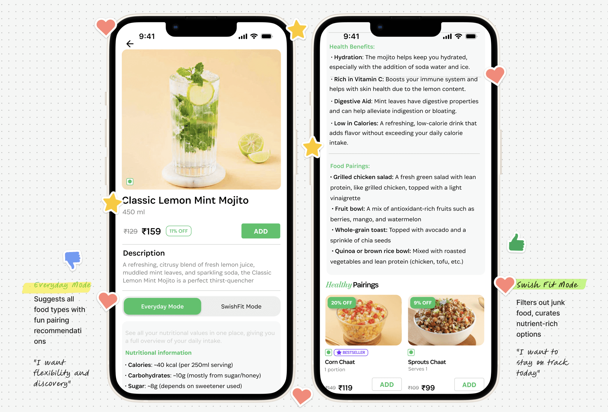 A UX exploration proposing a dual-mode system to enhance food discovery — balancing flexible everyday eating with health-first personalisation.