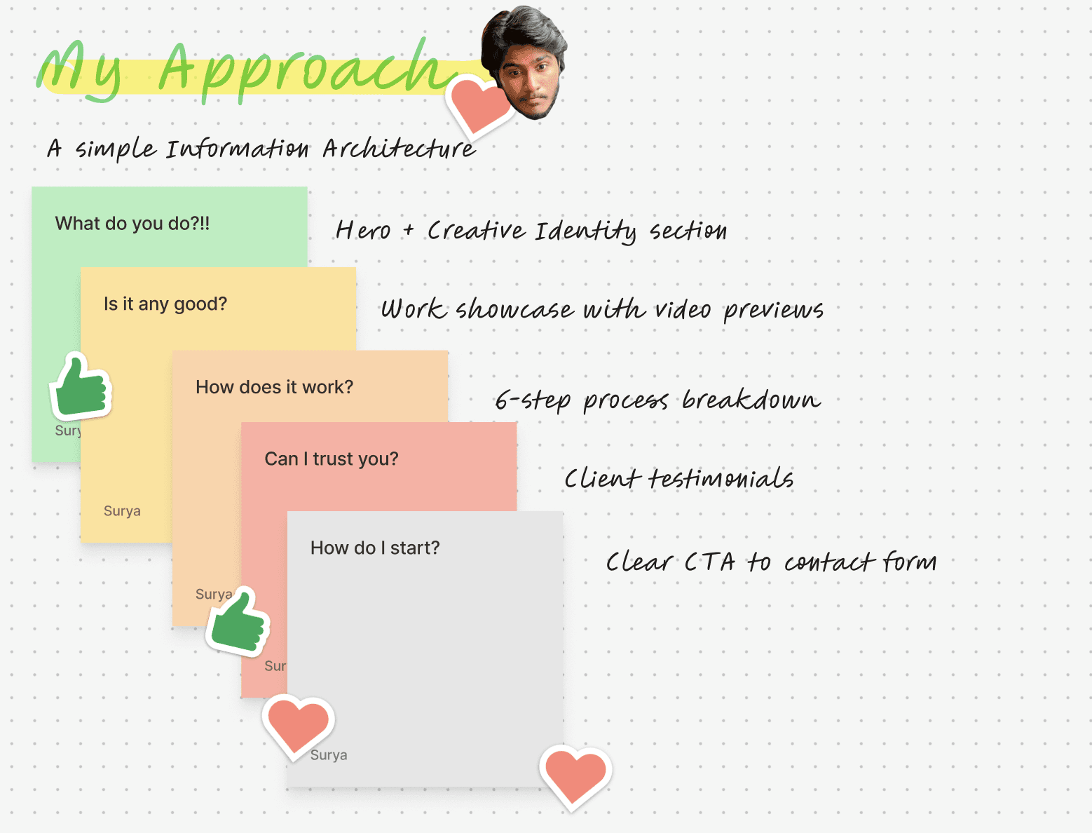 This project reinforced that interaction design for service businesses is about reducing uncertainty. Every design decision from the video grid to the process breakdown aimed to answer user questions before they had to ask.